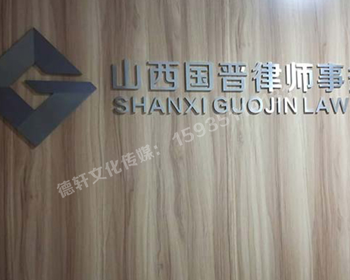 精品不銹綱字背景墻 山西國(guó)晉律師事務(wù)所